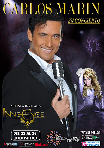 CARLOS MARIN, componente español del grupo Il Divo, nos ofrece por primera vez un concierto exclusivo que recorre su carrera musical en el Teatro.Un Show de 90 minutos de duración con un despliegue espectacular de sonido, luces y video, arropado con una Big Band de 20 músicos, 10 bailarines y coro; al más puro estilo de Las Vegas, Broadway y Hollywood.El concierto contará con grandes melodías procedentes tanto del Teatro Musical como de la Gran Pantalla, además de canciones de cantantes tan conocidos como Frank Sinatra, Sammy Davis JR, Dean Martin, o Tom Jones, y temas latinos mundialmente famosos. Como artista invitada en esta representación, Carlos Marín nos trae a Innocence, la gran cantante del PopRock Sinfónico conocida ya por todo el público español, con la que interpretará algunos Dúos, y ella a su vez también nos deleitará con temas en solitario.