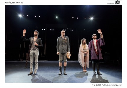 Más nombres del reparto: Toni Costa, Sergio Mur y Nico Romero, todos ellos fantásticos gracias a una acertadísima dirección de Ochandiano. Pocas veces uno sale tan embelesado por la poesía de unas imágenes tan atroces como las que se crean en este espectáculo. Y conocemos las cocinas de la tragedia cuando David Kammenos nos cuenta los entresijos de un género que gracias a montajes como este seguirá vivo. ¿Teatro de museo o teatro vivo? Bienvenidos sean los anacronismos y actualizaciones varias, bienvenido sea el trabajo de CREADORES, y no lo pongo en mayúscula por falta ortográfica alguna, como Rubén Ochandiano. Obras como esta despiertan el alma y son una certera y maravillosa patada a los entrecostales de nuestra sociedad sin hacer de Antígona un panfleto absurdo.