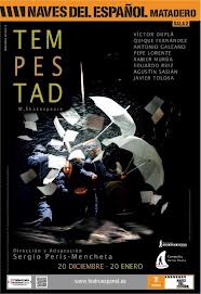 images (1)Cuando las luces se apagan y el escenario se ilumina, el espectador espera vivir una aventura, que le cuenten una historia que le haga viajar gracias al poder de su imaginación. Muchas veces se puede llevar un chasco, pero cuando surge la magia es algo inolvidable, algo que te llega muy hondo y que solo el teatro gracias a sus recursos de arte vivo puede conseguir. Sergio Peris Mencheta se tiró a la piscina con doble tirabuzón y posibilidad infinita de estrellarse en un acercamiento a una de las obras maestras de Shakespeare, La tempestad. Aquí torna en una Tempestad muy personal y esa es la clave del éxito del espectáculo que ahora se puede ver en el Teatro Galileo hasta el 2 de junio . Tempestadse encuadra en el ensayo de una nueva producción de la obra del autor bardo. Sí, es puro teatro. Los actores paran la representación cuando ven que les han cambiado el pie o cuando están excesivos en algunos pasajes. La versión va a la esencia del texto, coge aquellos elementos y aquellas partes del texto que cree que son esenciales para contar este cuento. En realidad, todo es un juego. El teatro es un juego, donde los espectadores pagan para ser engañados en un pacto previo que haces al pasar por taquilla. Los actores juegan a ser otros y aquí todos los actores interpretan varios papeles, subrayando ante el público este hecho, y nos resulta más creíble que en otros montajes con una veintena de actores. Se crea la magia. Se acepta el pacto espectador-actor y nos creemos en mitad de la tempestad, ¡Qué belleza de imagen se ha creado para recrear tal momento inicial del montaje! Tras un montaje de mujeres, Incrementum, Peris Mencheta se enfrentó a un montaje de hombres. Sí, como en la época del autor de Hamlet, es un hombre el que toma el roll femenino. Y de nuevo, la sensación de ser parte de un maravilloso juego infantil, ¿Quién no ha soñado alguna vez con surcar el mar en un barco y vivir una y mil aventuras? Por supuesto, sin un trabajo interpretativo colosal no sería posible conseguir la magia, que el espectador entrase en este juego de convenciones teatrales. Del excelente reparto de 8 intérpretes que interpretan  la friolera de casi veinte personajes, me quedo con el  trabajo superlativo de Victor Duplá y Javier Tolosa. El esclavo deforme de Javier Tolosa, mitad fragilidad mitad irracionalidad, es una de las mejores construcciones de personaje de la función, solo hay que ver las transiciones entre este Calibán y  el ‘racional’ Alonso. Qué decir del Próspero y Antonio de Victor Duplá. Difícil adjetivar su extraordinario trabajo.
