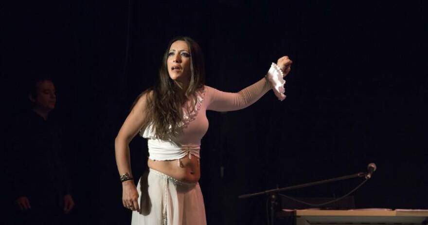 Comienza la voz de Federico, escribiendo cartas. Escribiendo el Romancero Gitano, con la luna que se ha colado en la cueva, con una luna que no es redonda, pero sí es blanca. Es Mónica desgarrada. En su voz, en sus manos, en sus pies y en su zapateo, en su vestido blanco donde caben todas las palabras. Después será también Soledad Montoya, y Antoñito el Camborio, y es el Amargo, y es la Guardia Civil caminera, y la casada infiel, y el mundo andaluz, y el emplazado, y es don Pedro a caballo, y la gitana monja, y es Federico escribiendo con el temor acechando de su muerte, aunque aún no sospecha nada. Pero, no. Lorca no ha muerto. Está en Mónica Tello y en el espacio que llena con su sola presencia, en Rafael Salinero con su guitarra, en José Mínguez con su voz y sus palmas.