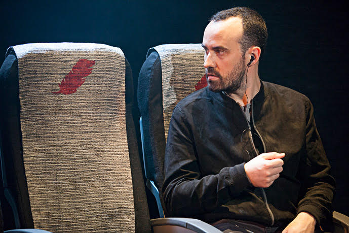 Le ayuda en la dirección Josete Corral, porque cuatro mentes ven más que dos. Y aún ven más los que asistimos, como viajeros, a ese vuelo de intriga que nos hace sospechar hasta de los mensajes en inglés, de los que no levantan la vista de su teléfono, de los que no abren los ojos disimulando que están durmiendo, de los que leen el periódico, de los que hablan mucho y de los que están en silencio, de los que leen poesía y de los que hacen teatro.