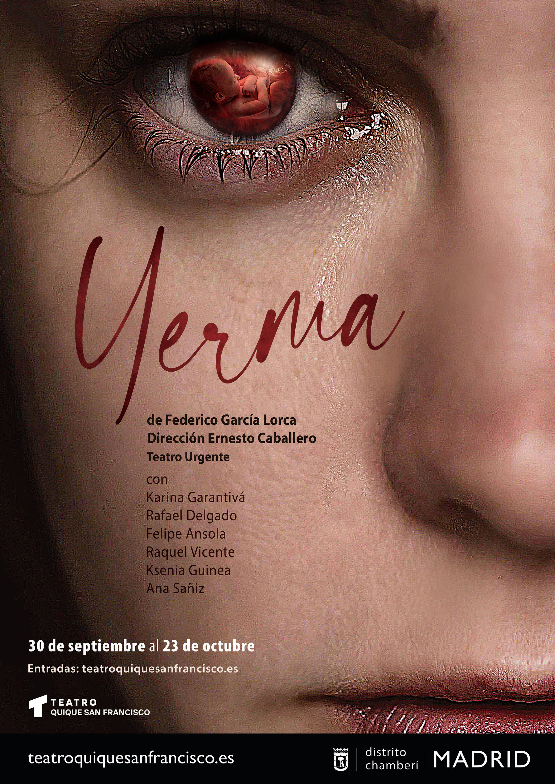 Están las palabras y diálogos de Federico García Lorca, auténticas, vivas, verdaderas. Está la puesta en escena de Teatro Urgente, con Ernesto Caballero a la cabeza, un poema trágico con Karina Garantivá como protagonista que no se arredra, sabiendo que ella misma se condena. Aunque desde el público no la juzguemos, porque es nuestra.