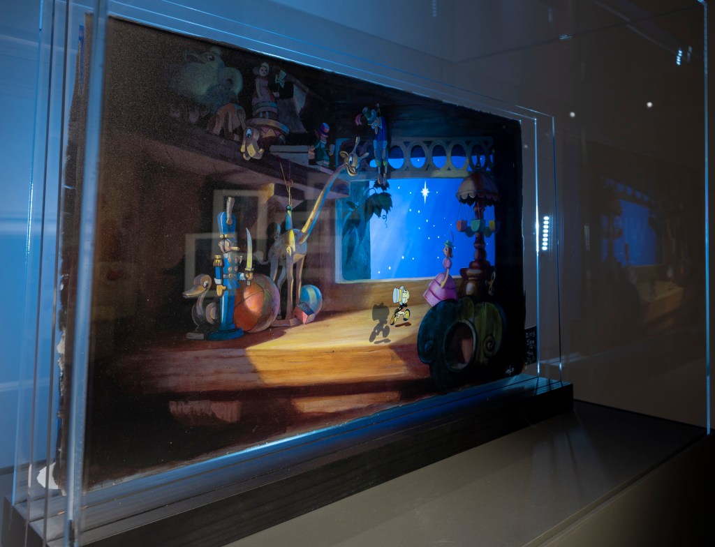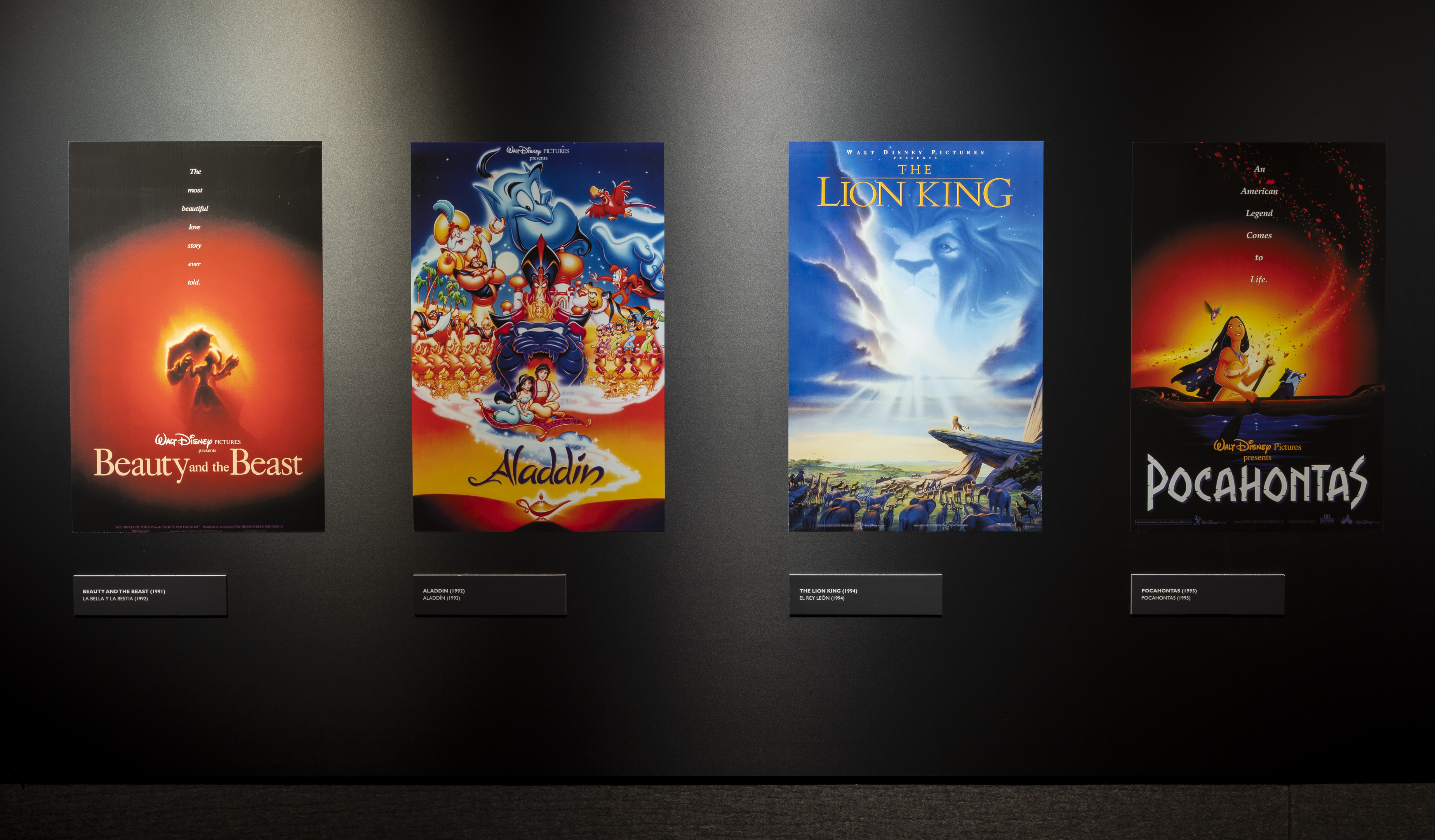 La exposición comienza con los carteles de todas las películas de animación del estudio desde Blancanieves y los 7 enanitos hasta la futura Wish: El Poder de los deseos, que tiene por cierto un espacio destacado en la exposición.