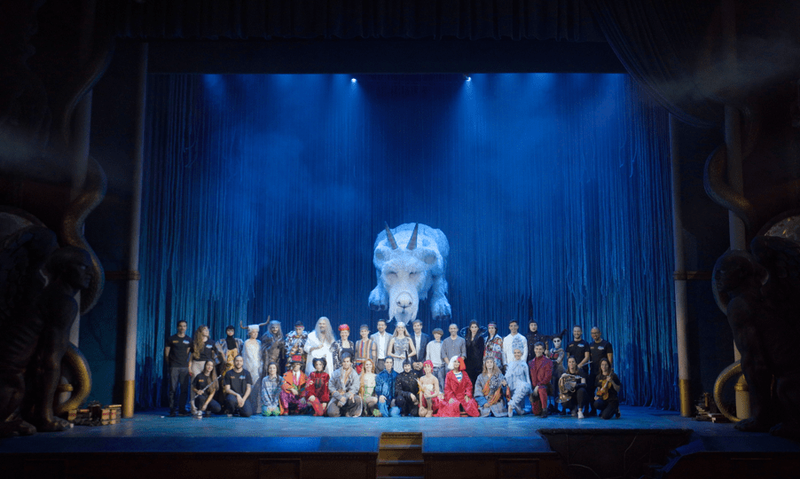Pablo Puyol, un buen ejemplo del actor integral de teatro musical. Lo que hace Puyol sobre el escenario del Calderón es un trabajo realmente reseñable. No se trata solo de actuar y cantar excepcionalmente, también le toca la difícil tarea de ejecutar complejos números de ilusionismo que exigen también de sus habilidades físicas. Un trabajo sobresaliente, el más completo de toda su carrera, que merece quitarse el sombrero -que no la chistera. Como nos tiene malacostumbrados, Julia Möller, incluso partida por la mitad- nos vuelve a regalar un trabajo memorable en un reparto en el que vuelve a sobresalir con su buen hacer Christian Escuredo.