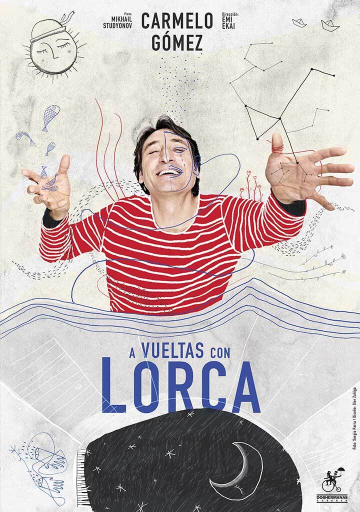 Nos vamos a dar un paseo con Lorca, A vueltas con Lorca, y se viene (o nos lo trae) Carmelo Gómez, con su maleta de bululú, con camiseta a rayas de titiritero, con su sombrero de acento circunflejo para brindar por el futuro con esperanza. Y no viene solo, que se trae un piano (Lorca era un gran pianista) y a Mikhail Studyonov, que es ucraniano (¿o se dice ucranio?) y estamos con él, y solo la poesía y la música nos salva. Bueno, y el teatro.