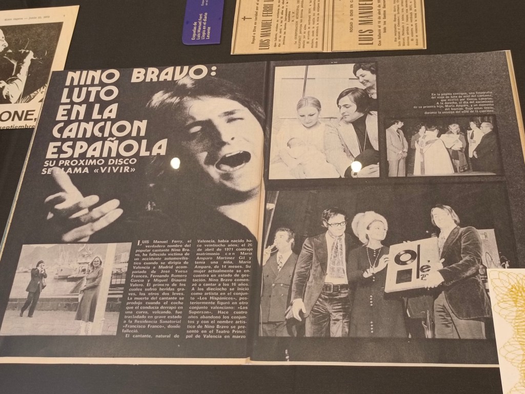 Al partir UN BESO Y UNA FLOR. El recorrido incluye muchos de los recortes que dedicó la prensa en el día de su fallecimiento. «Era el mejor», reza uno de los titulares, una impresionante doble página dice «Nino Bravo: Luto en la canción española» y en otra comparte espacio con todo un rey como era Elvis, ¿Casualidad? Es imposible imaginarse qué hubiese sucedido si Nino hubiese tenido una carrera más larga, pero lo que queda claro es que su legado sigue vivo 5 décadas después a tenor de lo que ocurrió en la tarde del domingo en Valencia.
